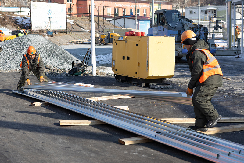 Сейчас на объекте завершается монтаж сэндвич-панелей (это такой строительный материал с утеплителем между металлическими листами) и работы по благоустройству, а также монтаж кровли. Параллельно специалисты Владивостокского предприятия электрических сетей проводят работы, чтобы подключить новый ФОК к свету.