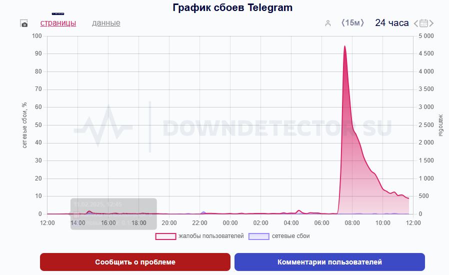Примерно в 00:30 по московскому времени (7:30 по Владивостоку) количество жалоб достигло максимального значения в четыре тысячи, а всего за последние сутки появилось 28 тысяч сообщений о неполадках.