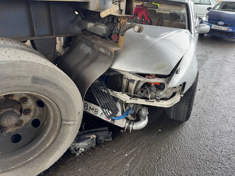 Виновник аварии на «субарике» столкнулся с Toyota Cresta, которую от удара отбросило в припаркованный прицеп. Никто не пострадал.