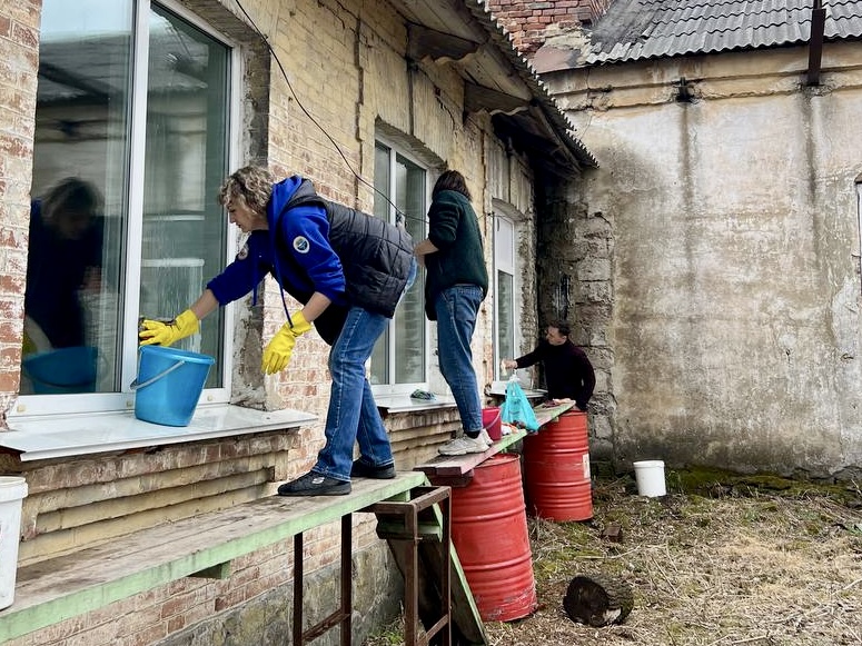 Свой визит волонтеры FESCO начали с того, что помыли окна у здания центра. Затем гостям провели экскурсию по творческим мастерским, в которых были представлены изделия, созданные подопечными «Благого дела».