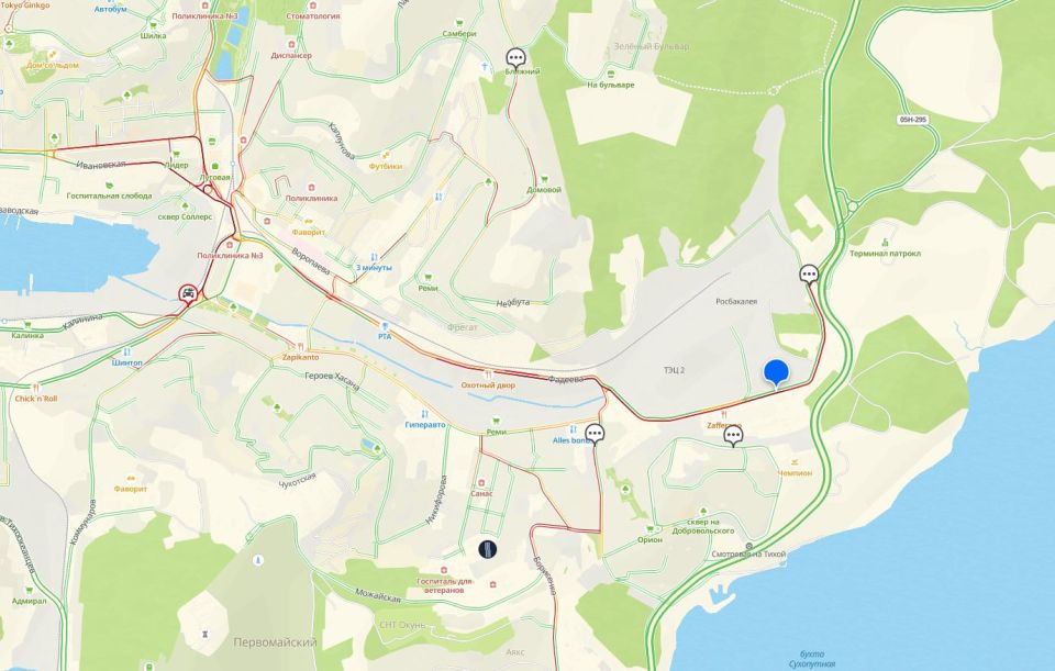 Более того, автомобилисты массово жалуются на огромные заторы на пути с Патрокла - судя по картам, пробки охватили улицы Фадеева и Борисенко.