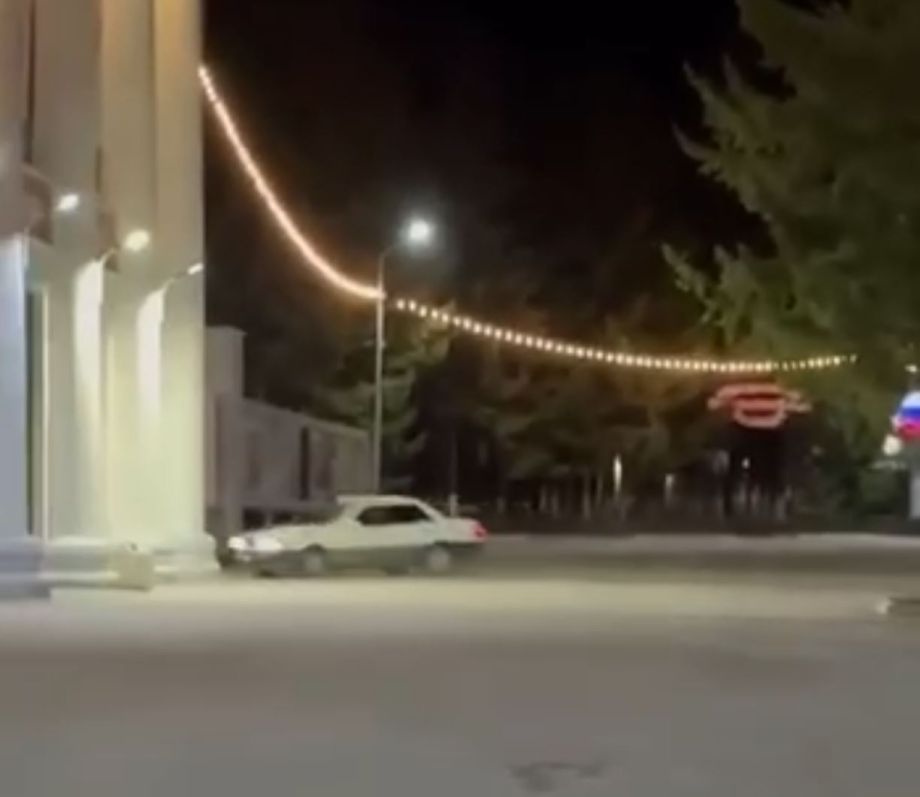 На записи видно, как автомобиль дрифтует на площади рядом с Домом культуры, и в какой-то момент после разгона врезается в стену здания.