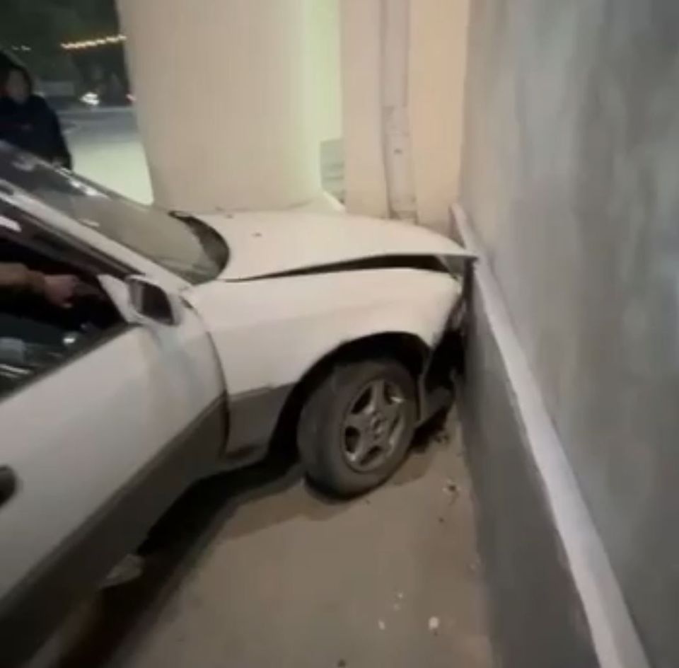 В этот момент в машине находились двое подростков, один из которых после столкновения со стеной вышел из машины, держась за голову, но сказал в камеру, что у него все нормально.