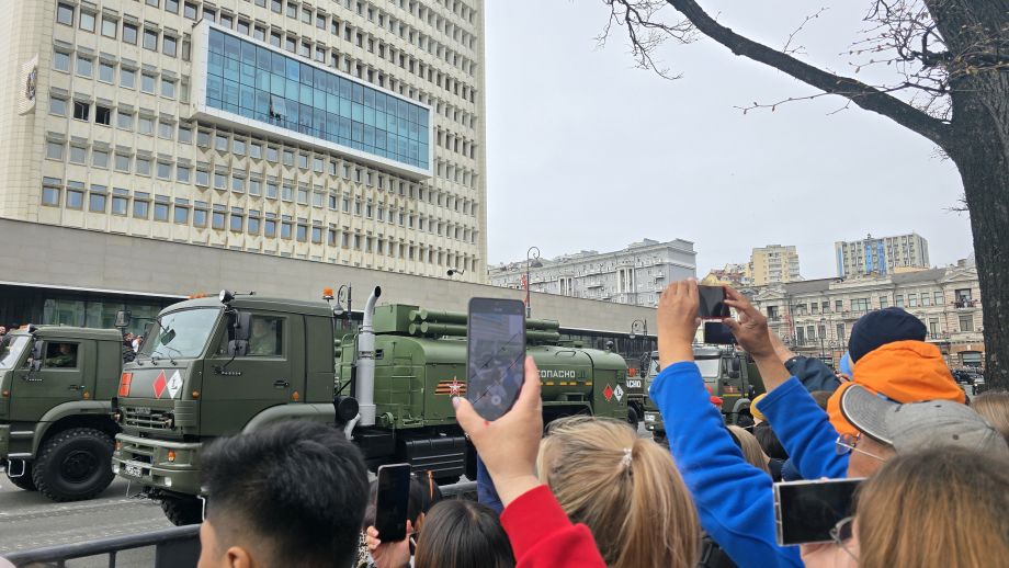 Парад начался в 10:00 (03:00 мск). Командующий Тихоокеанским флотом адмирал Виктор Лиина объехал парадный строй и поздравил участников парада с 80-й годовщиной Победы.