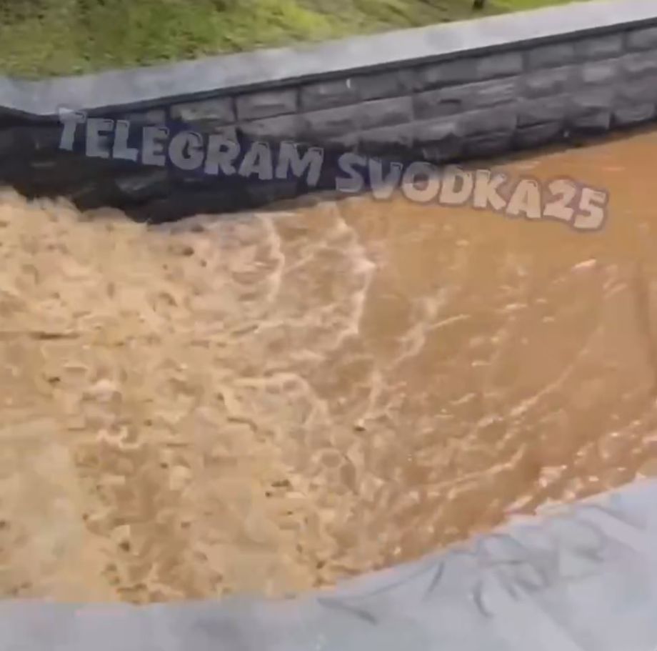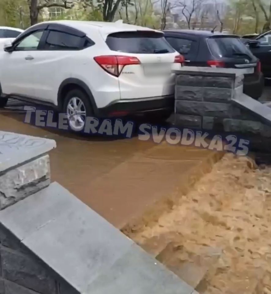 Владивостокцы сняли, как потоки воды начали бить на улице Пушкинской и полились к Светланской, а затем и на набережную Цесаревича.