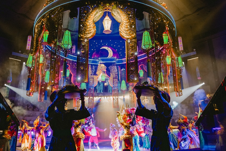 Во время представления абсолютно каждый сможет побывать в разных историях: восточный базар, плавно переходящий к путешествию во дворец Шейха и каравану величественных верблюдов. А оказавшись в пустыне, зрители вместе с главным героем увидят завораживающих скорпионов – акробатов на джамперах, после чего очутятся в замке самой настоящей принцессы, которая играет с самоедами и далматинами. Зрители попадут в «логово паука», где акробаты на мачте выполняют невероятные трюки, а также воображение аудитории впечатлят групповые жонглеры на моноциклах и многое другое!