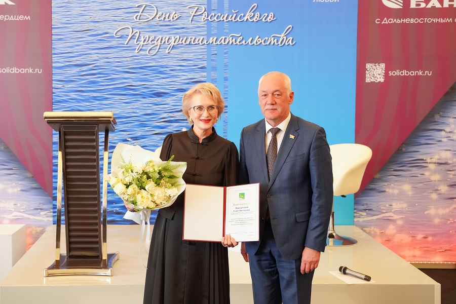 Участников мероприятия поздравили с Днём российского предпринимательства и наградили: председатель Думы города Владивостока Андрей Брик, министр экономического развития Приморского края Андрей Блохин, министр туризма ПК Наталья Набойченко, заместитель главы администрации Владивостока Екатерина Сиволовская, депутат ЗакСа Приморского края Оксана Рыбалко, врио уполномоченного по делам предпринимателей в Приморье Наталия Кошелева, руководитель центра «Мой Бизнес» Андрей Шевченко и другие.