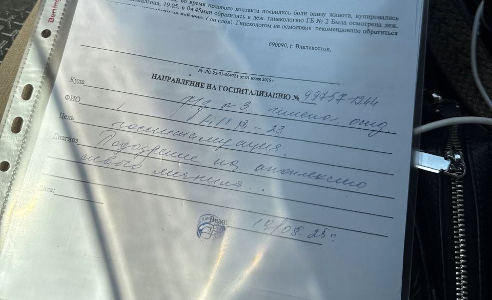 В этот раз дежурная гинекология работала во Владивостокском клиническом родильном доме № 3 на ул. Калинина, 55. После часового ожидания, ей провели повторные осмотр и УЗИ. Когда поняли, что дела плохи, девушке сделали пункцию (медицинская процедура, заключающаяся в проколе тканей, полости или сосуда специальной иглой с лечебными или диагностическими целями). Диагноз подтвердился.