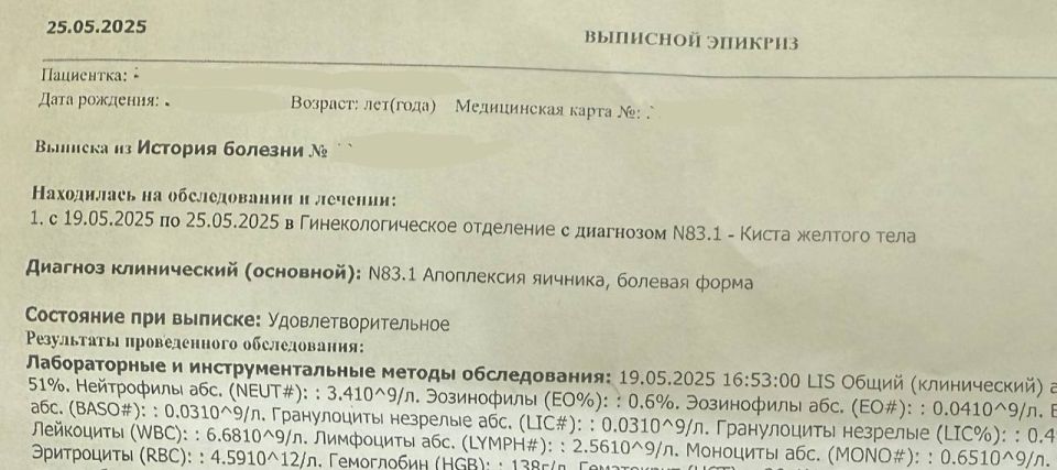 Именно в платной клинике ей провели полноценный осмотр и сделали УЗИ. За то, что девушке обязаны были сделать бесплатно по полису ОМС, Анастасия заплатила около 3500 рублей. Итог: направление на экстренную госпитализацию с подозрением на апоплексию яичника.