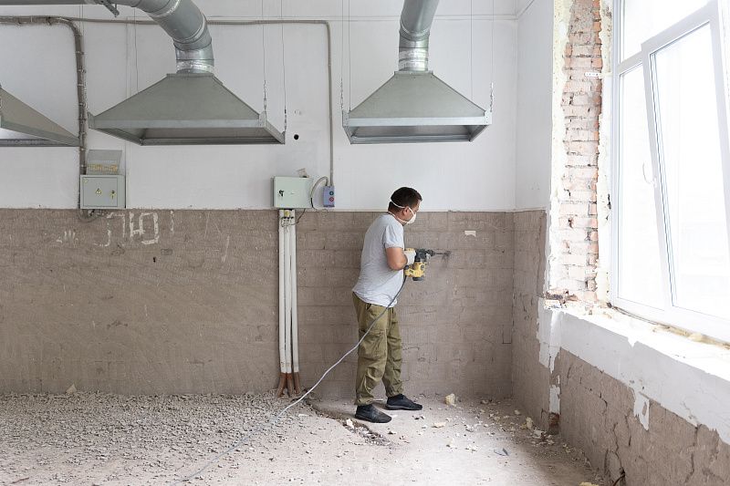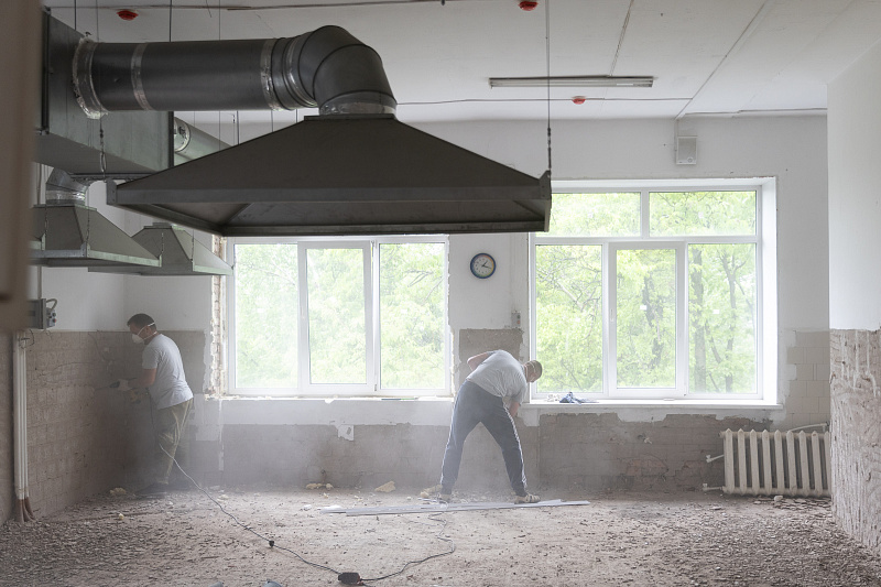 В муниципальной школе № 70 Владивостока масштабная модернизация выходит на новый этап: начался капитальный ремонт пищеблока. Сейчас строители интенсивно работают над демонтажом устаревшего оборудования кухонной и столовой зон, подготавливая пространство к полному обновлению, сообщает PRIMPRESS со ссылкой на пресс-службу администрации Владивостока. Процесс демонтажа включает в себя разборку стен, полов и всех инженерных коммуникаций. Ранее были отремонтированы фасад и входная группа, а на территории установлены лавочки и навесные качели.
