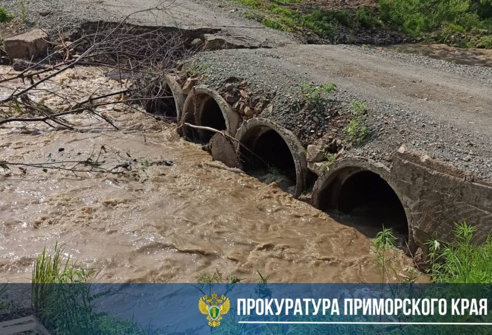Автомобильную дорогу размыло в Уссурийском городском округе Приморья. Очередной проезд через водоем не выдержал удара стихии и «поплыл» после серьезных осадков. По этой причине в дело вмешалась прокуратура Приморья, сообщает PRIMPRESS со ссылкой на пресс-службу ведомства.