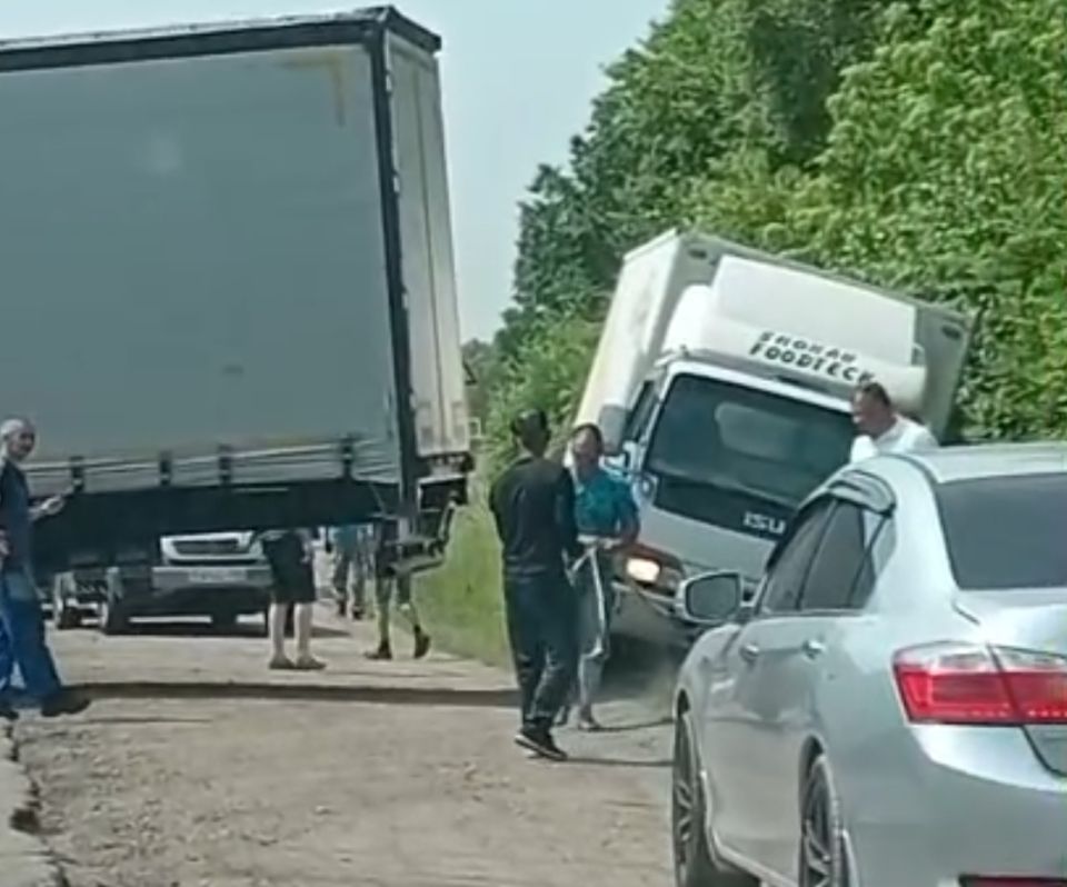 Еще один водитель грузовика стал участником ДТП по нелепой случайности - он попытался объехать огромный затор по обочине, но едва не завалился на бок и застрял в канаве.
