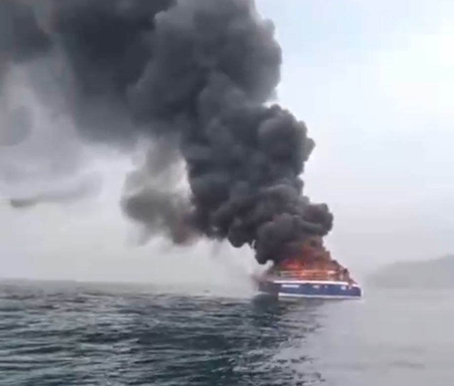 Мощный пожар вспыхнул на плавсредстве, находящемся посреди моря рядом с островом Шкота. Известно, что это сдаваемый в аренду катамаран и, к счастью, находившиеся на нем люди успели эвакуироваться, но некоторых из них прямо сейчас откачивают на берегу сотрудники скорой помощи.
