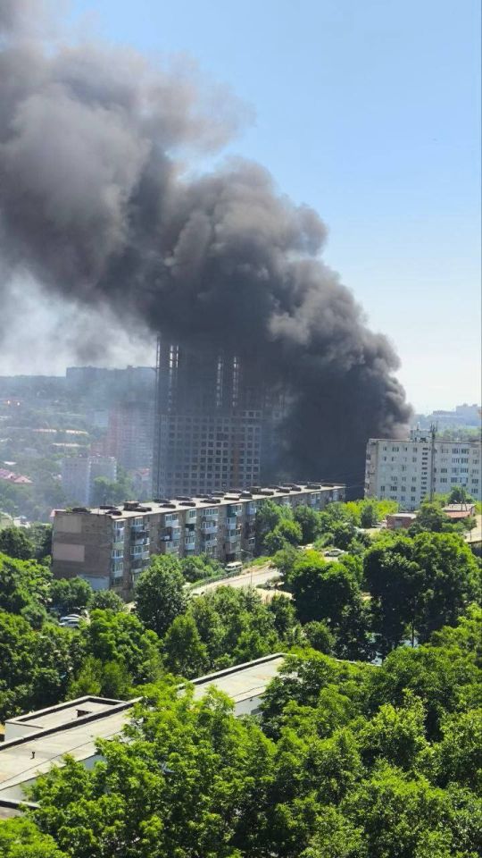 Строящийся ЖК «Борисенко 48» на ул. Борисенко во Владивостоке горит, сообщает PRIMPRESS.