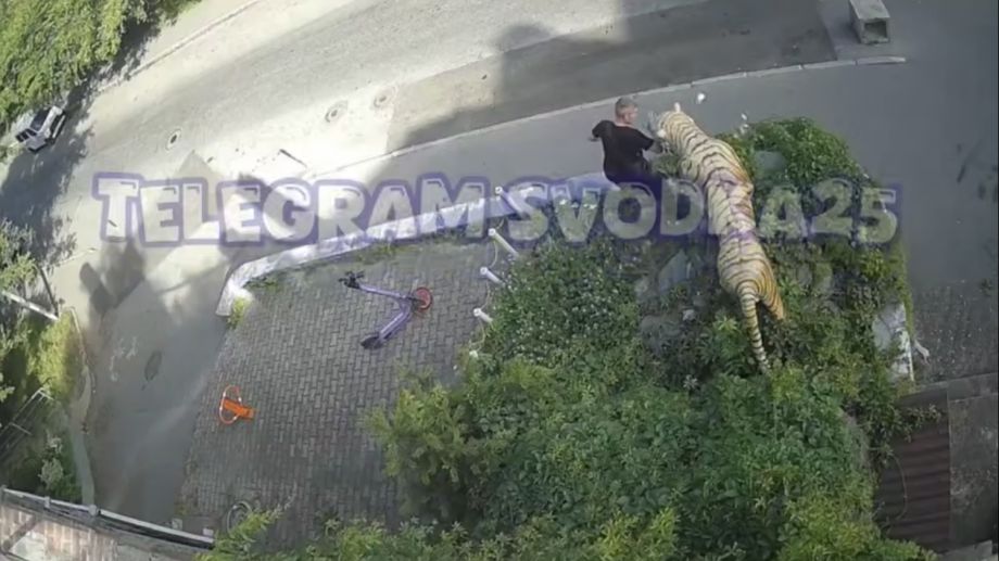 Зверское нападение было совершено воскресным утром 6 июля на улице Тигровая, неподалёку от сквера Макарова. Камера видеонаблюдения запечатлела, как проходящий мимо мужчина неожиданно подошёл к статуе тигра и, возомнив себя «воином дракона», одним ударом снёс дикой кошке половину головы. Одержав победу над страшным хищником, вандал в лучших традициях голливудских фильмов спокойным шагом ушёл по своим делам.