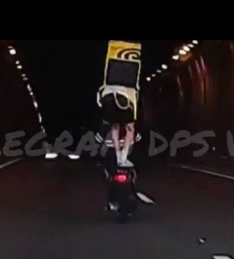 Подобные «выступления» в закрытом тоннеле представляют реальную угрозу как для самого нарушителя, так и для всех участников движения. При этом в сумке на спине водителя можно разглядеть типичный термобокс службы доставки — предполагается, что мужчина находился при исполнении обязанностей курьера.