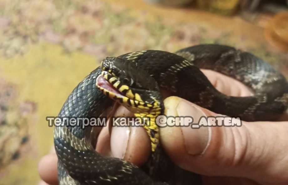 Змея пожаловала в один из домов Артёма в районе ГРЭС. Незваный гость недолго оставался незамеченным – хозяева практически сразу поймали бесцеремонную рептилию и выложили её «фоторобот» в социальные сети, сообщает PRIMPRESS.