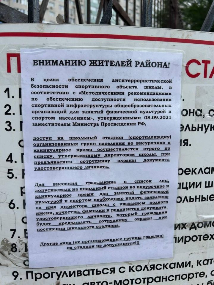 Жители улицы Жигура пишут петицию президенту – их не пускают на стадион школы №67, закрытый в целях обеспечения антитеррористической безопасности. Недовольные родители обвиняют во всём директора, сообщает PRIMPRESS со ссылкой на новые медиа.