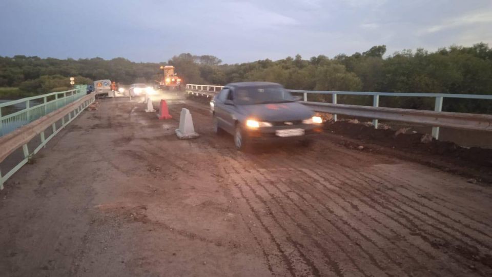 На данный момент проезд по мосту частично открыт. Профильные организации начинают монтаж временной объездной дороги. Геодезисты проводят измерения, чтобы определить необходимое количество и размеры водопропускных труб.