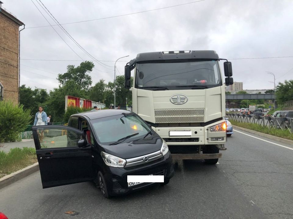Во Владивостоке на улице Калинина самосвал устроил ДТП с легковушкой, которая попала в слепую зону, сообщает PRIMPRESS со ссылкой на службу аварийных комиссаров «СфераДТП».