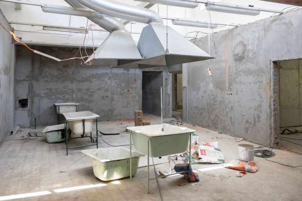 Одновременно ведутся работы и по другим направлениям. По словам представителей городской администрации, фасад здания готов уже на 70 %, продолжается покраска.