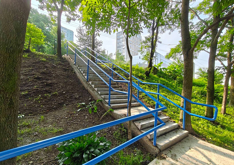 Новые, удобные и безопасные лестничные спуски уже оценили жители улиц Нейбута, 30, Жигура, 40 и 18, Адмирала Юмашева, 10-8, Снеговой, 127, Державина, 16-21, Толстого, 47 и 25, Баляева, 36-40, Аллилуева, 5, Тунгусской, 24, Пионерской, 1, Пушкинской, 13а. Отдельно отмечены обновленная инфраструктура на Русском острове — возле памятников Г. Г. Елисееву и Героям-Тихоокеанцам.