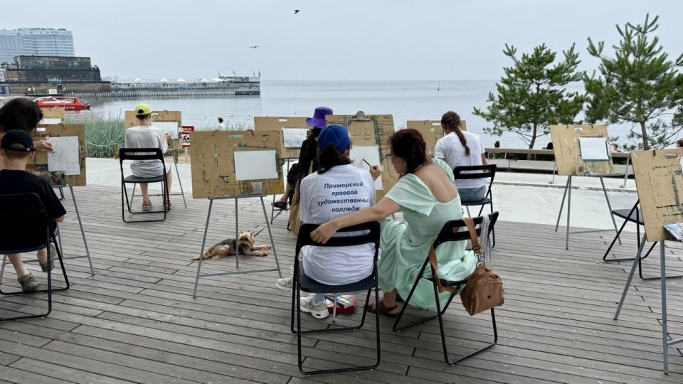 В 12 часов в рамках «Бодрой субботы» Приморский краевой художественный колледж организовал на набережной Спортивной гавани арт-пикник под названием «Пишем и слушаем море» (0+) . Студенты и преподаватели колледжа совместно с участниками мероприятия занимались живописью морского пейзажа и делились рекомендациями по технике рисования.