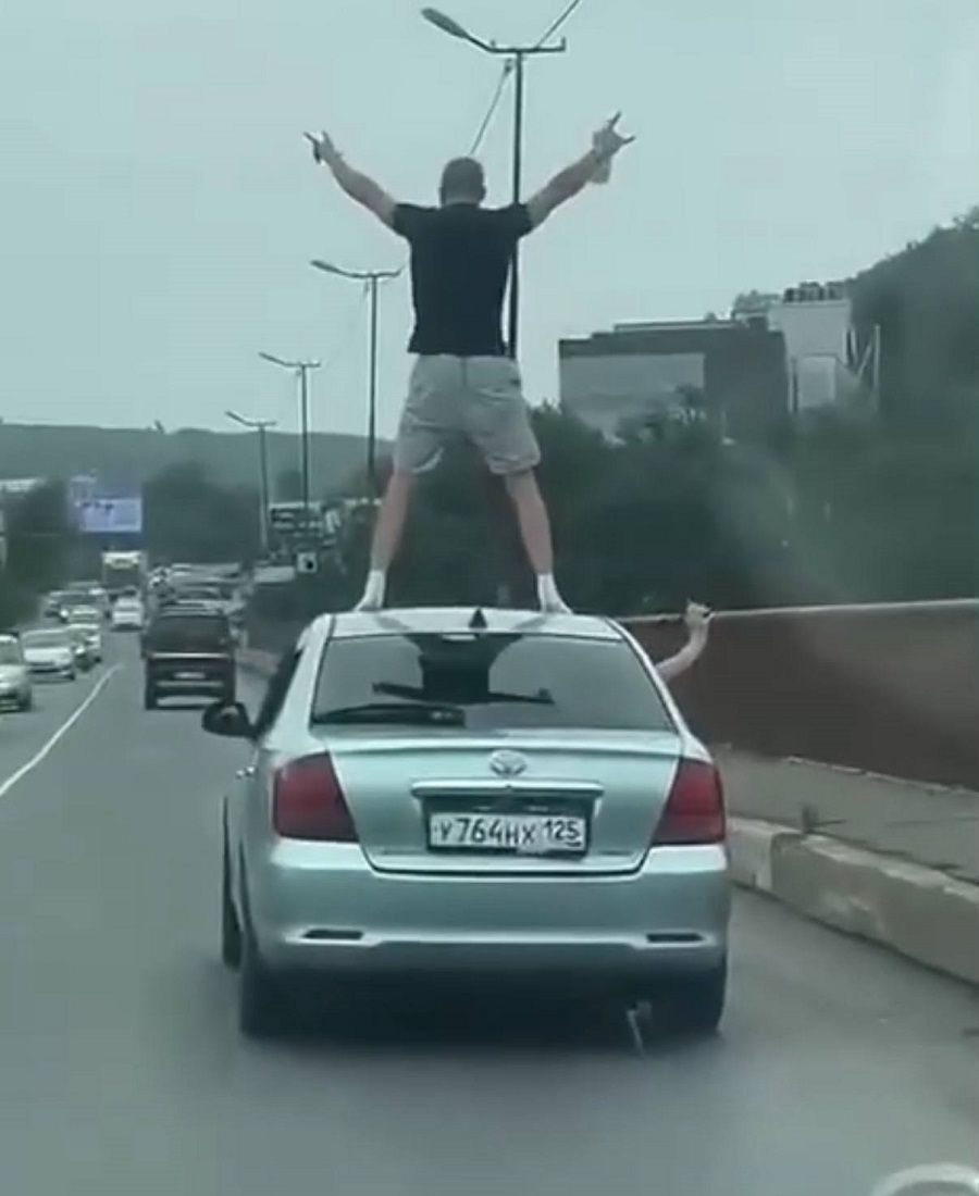 Во Владивостоке полицейские установили и привлекли к ответственности участников опасного трюка на дороге. Видео, на котором молодой человек едет стоя на крыше автомобиля Toyota Allion по Рудневскому мосту, появилось в соцсетях и вызвало широкий резонанс.