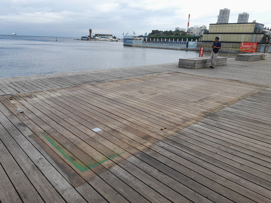 Больше десятка объектов нескольких точек общепита (не менее пяти – см.карту) убрано с променада на набережной Спортивной гавани (формально — с пляжа Юбилейный) — от них остались только следы на палубной доске, которой покрыт променад. Полностью освобождён участок от ресторана See sea (баня Moby) до схода в воду клуба зимнего плавания «Косатка ДВ». Всего, по словам главы Владивостока Константина Шестакова, планируется убрать порядка 35 объектов.