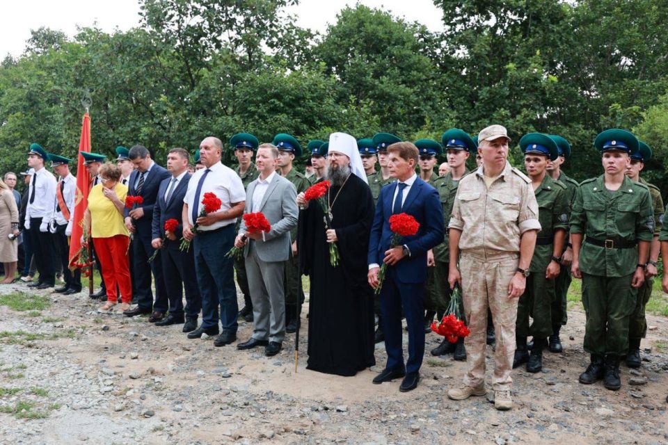 В церемонии возложения цветов и венков к мемориалу, которая традиционно проходит 6 августа – в день водружения Красного Знамени над сопкой Заозёрной, приняли участие также начальник Пограничного управления ФСБ России по Приморскому краю Дмитрий Юдин, митрополит Владивостокский и Приморский Павел, руководство муниципалитета, пограничники, юнармейцы и местные жители.