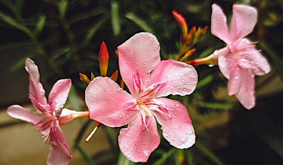 Олеандр содержит сердечные гликозиды олеандрин и корнерин – группу фитохимических веществ, которые используются для лечения сердечной недостаточности и которые вредны и ядовиты для здоровых людей. Физический контакт с соком растения, частицы которого есть на листьях и стеблях растения, с большой долей вероятности вызовет ожог, похожий на химический. Причем, если после этого выйти на солнце, степень повреждения кожи усилится – как в случае с борщевиком.