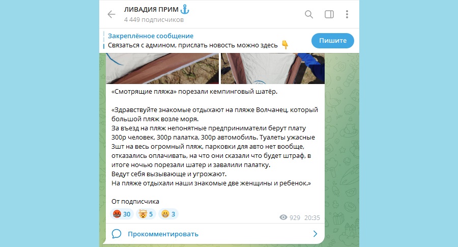 На скриншоте — ситуация на соседнем с Ливадией пляже в Волчанце, но по сути ничем не отличается и от самой Ливадии.