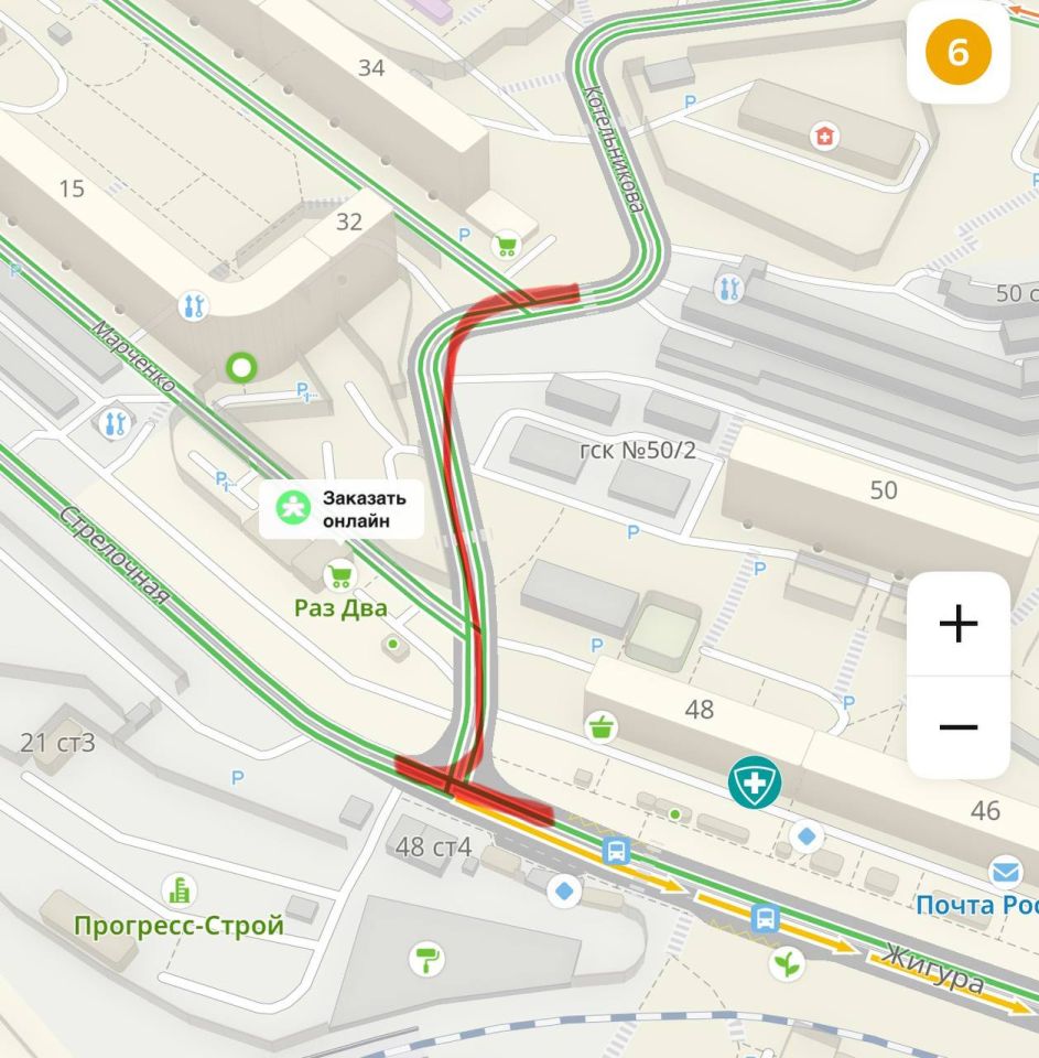 Временное перекрытие, хоть и частичное, затронуло важный участок дороги – спуск с улицы Котельникова к Жигура, создав значительные неудобства для горожан. Особенно пострадали жители дома на Марченко, №15 и клиенты придомовой платной автостоянки, расположенных непосредственно в зоне перекрытия. Автомобилистам приходилось искать альтернативные места для парковки: у супермаркета «Раз-Два», на обочинах или вообще «где придется».