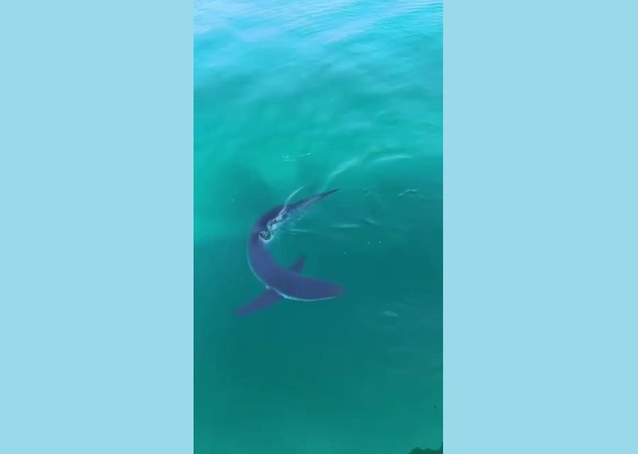 Так делать нельзя, предупреждают опытные рыбаки: хищники (и акулы не исключение) сразу начинают воспринимать человека или транспорт как источник пищи. Сообщалось недавно, что акула перевернула лодку рыбаков, охотясь за их садком с уловом.