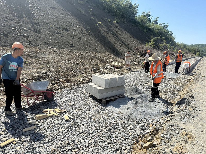 Как рассказали в муниципальном учреждении «Лазо», курирующем строительство, работы ведутся по поточному методу. Это значит, что часть тропы уже почти готова к бетонированию, в то время как на других участках продолжаются подготовительные и земляные работы. Предварительно на всем участке провели планировку, разработку грунта и устройство системы водоотведения. Сейчас рабочие устанавливают бортовой камень и продолжают отсыпку щебёночных слоёв.