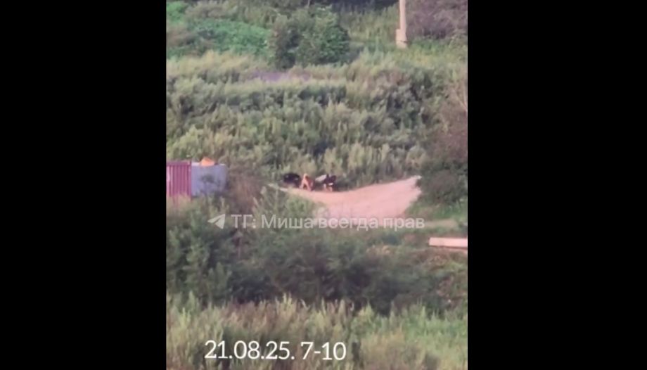Сообщается, что собаки прибегают со стороны находящейся недалеко войсковой части, хотя вряд ли они там "базируются".