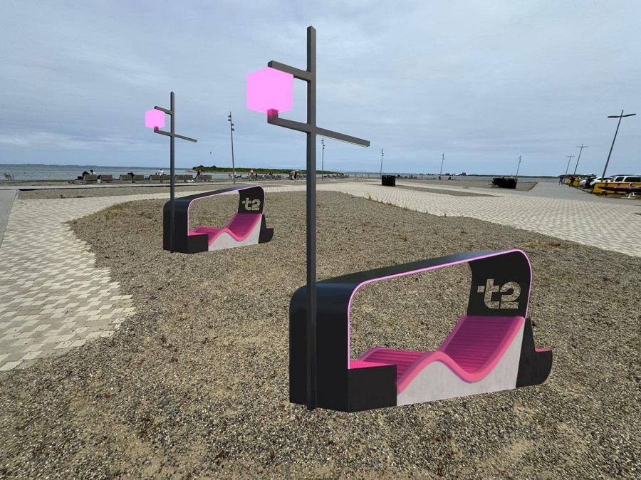 «Проект Олеси Ходосевич — ее технологичная и эстетичная лавочка под названием «Волна Т2» — мы реализуем буквально на днях! Приезжайте посмотреть! И посидеть!», — сообщила в презентации компания Т2.