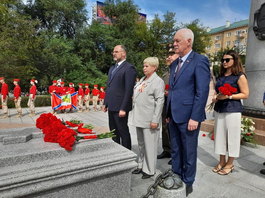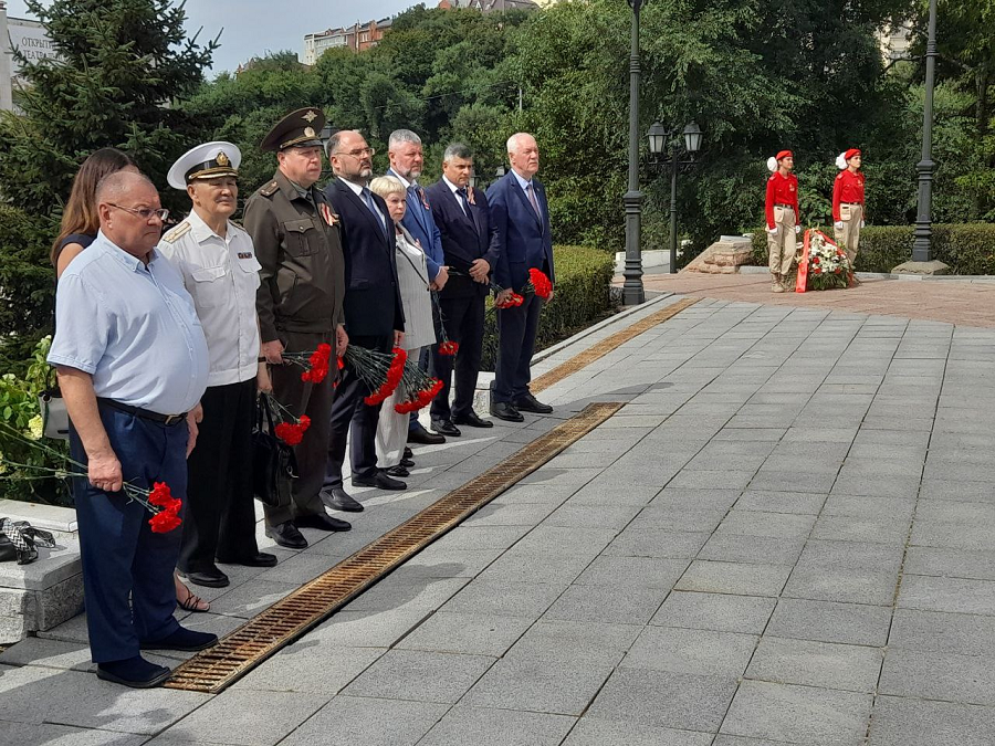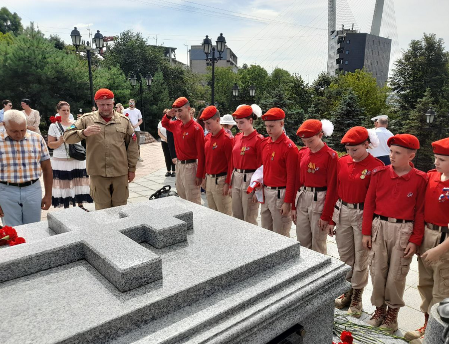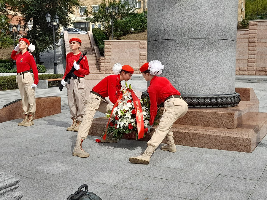 Завершилась церемония возложением юнармейцами памятной корзины к памятнику генерала-губернатора Николая Муравьева-Амурскоого и цветов к его могиле. В возложении цветов приняли участие глава Владивостока Константин Шестаков, заместитель мэра города – председатель комитета администрации города Хабаровска по управлению Индустриальным районом Мария Матаева, председатель Думы города Владивостока Андрей Брик, гости церемонии.