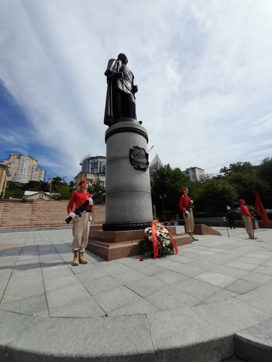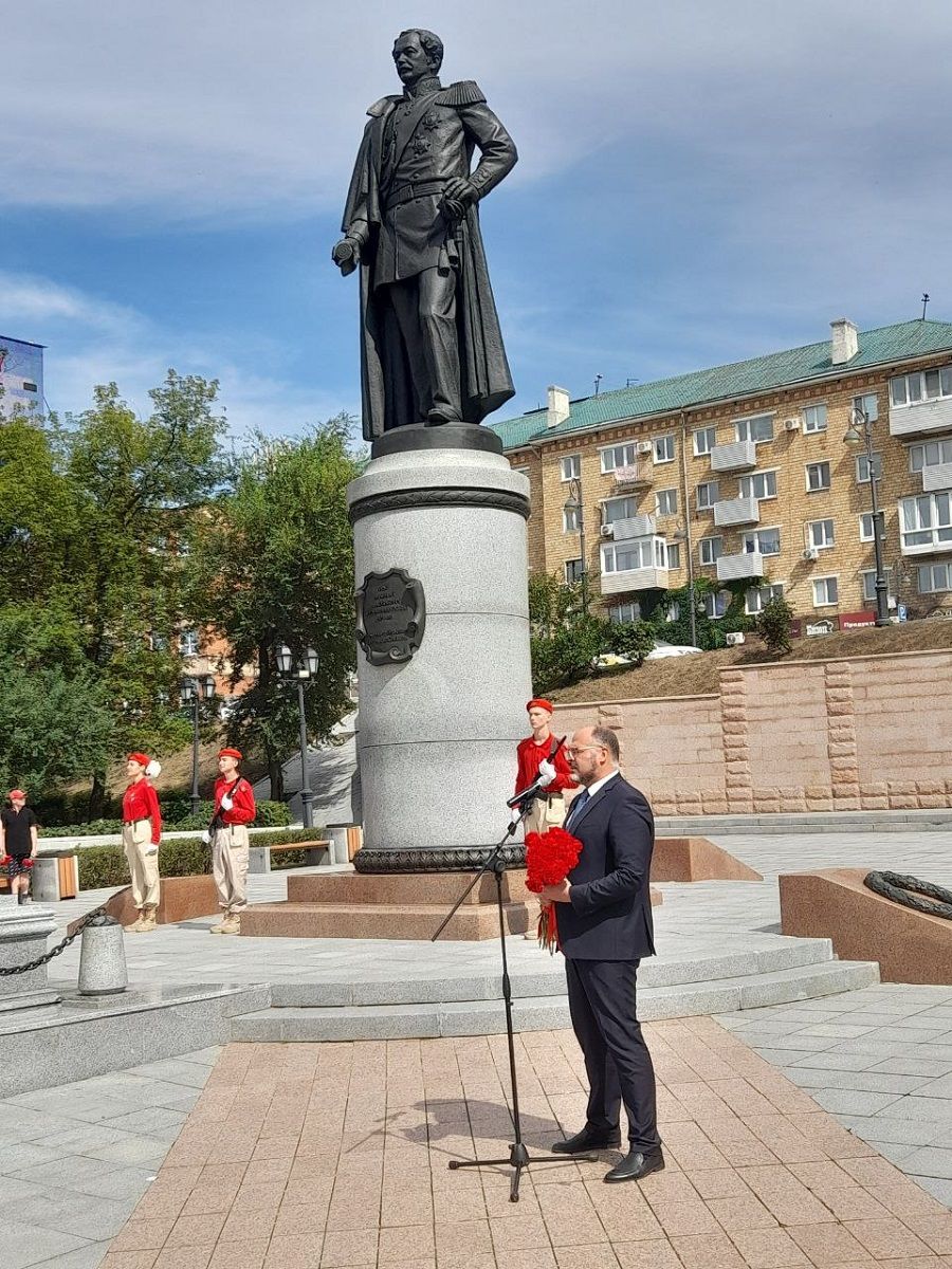 «Граф Николай Николаевич Муравьёв-Амурский приложил огромные усилия – и организационные, и дипломатические – для того, чтобы навсегда закрепить Дальний Восток за Россией. Айгуньский и Пекинский договоры, основание городов Хабаровск, Благовещенск, Владивосток связаны именно с его именем. Но это знаем мы, взрослые. Наша основная задача – сделать так, чтобы мальчишки и девчонки, которые учатся в наших школах, которые намерены связать свою судьбу с Дальним Востоком, точно знали, благодаря чьим подвигам, в том числе и дипломатическим, мы сейчас можем видеть облик той страны, которая когда-то, в том числе и ему, только грезилась», – обратился мэр Владивостока к присутствующим, значительную часть которых составляли именно школьники-юнармейцы.