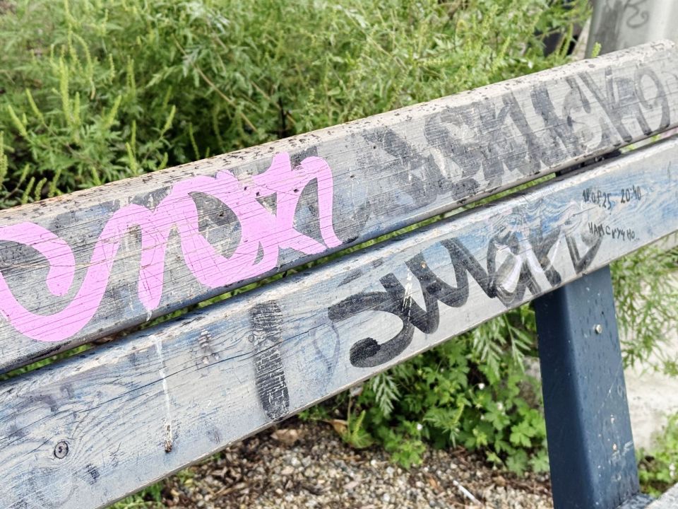 Сейчас на лавочках и качелях «красуются» странные надписи.