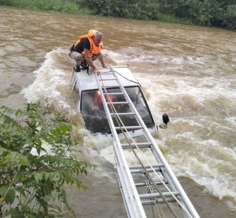 Чрезвычайное происшествие случилось вечером 1 сентября, когда мощный поток воды буквально смыл автомобиль вместе с находившимся внутри мужчиной. Транспортное средство оказалось в воде, застряв в русле реки.