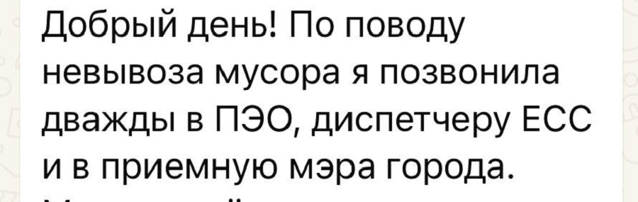 «Концов я не нашла, диспетчер обещала подать заявку. Причин невывоза назвать не может»