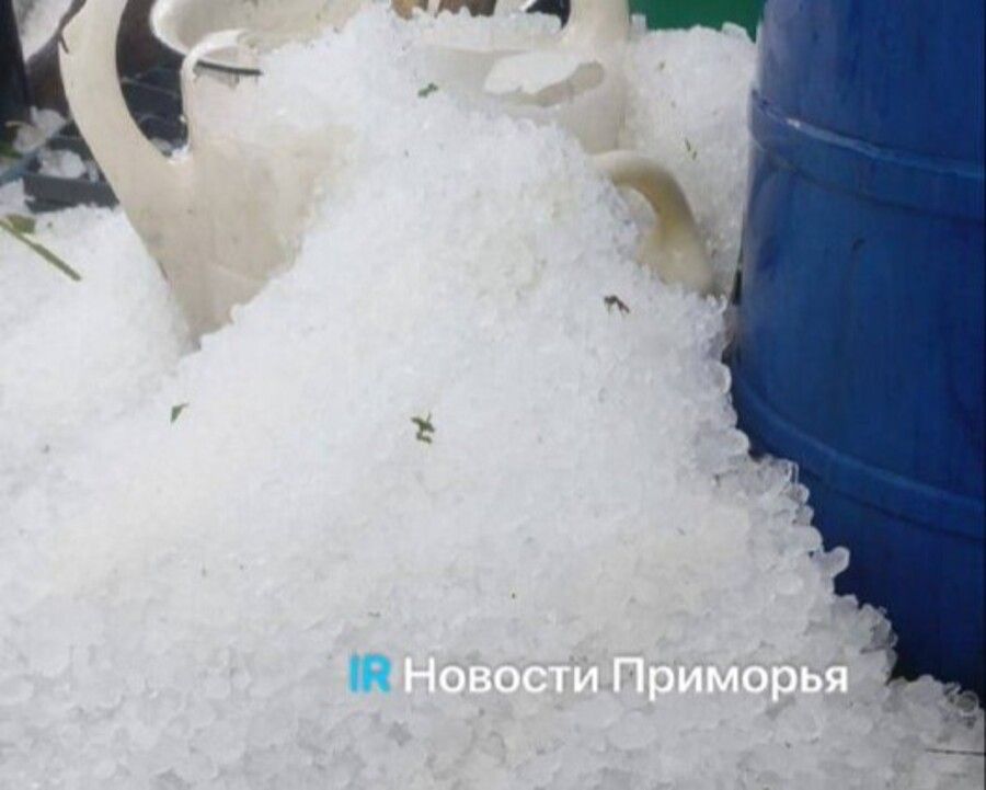 Сегодня в Черниговском округе Приморья прошёл мощный град. На кадрах в социальных сетях запечатлено село Дмитриевка, которое сильно пострадало от непогоды.