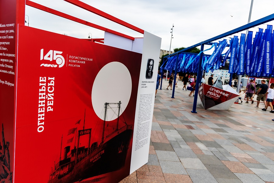 Транспортная группа FESCO (предприятие в контуре управления госкорпорации «Росатом») в честь 80-летия Победы и своего 145-летия открыла на набережной Спортивной гавани во Владивостоке выставку «Огненные рейсы». Мероприятие приурочено к выходу в свет нового издания одноименной книги Георгия Руднева.