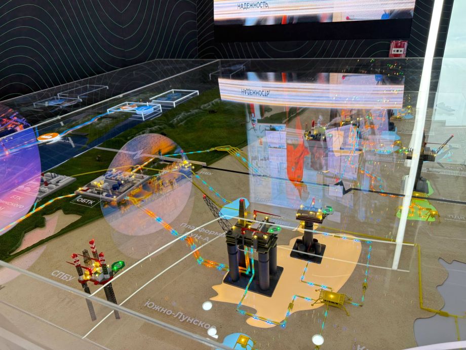 - Сахалинский павильон рассказывает, как произошла нефть, и опровергает миф о том, что топливо сделано из динозавров. Внутрь павильона поставили роботизированного динозавтра, который машет головой.