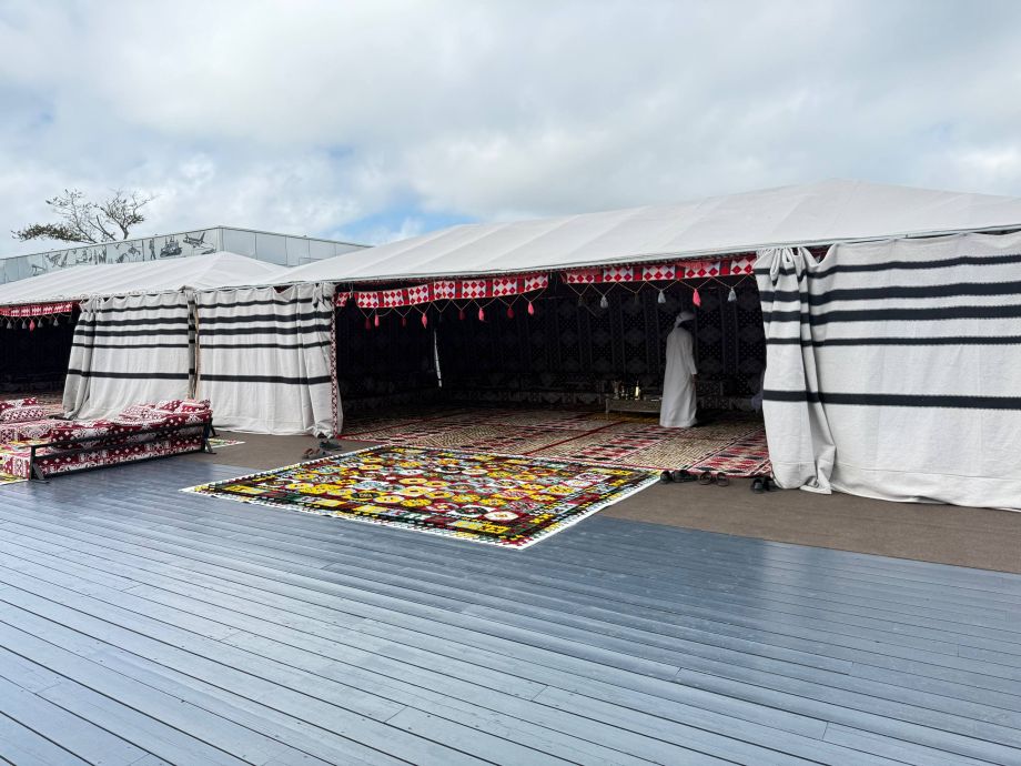 - Традиционно, популярной локацией стал и арабский «Дом чая» (а вообще-то кофе), где посетители с удовольствием проводят время на мягких коврах. И, конечно, делали фотографии.