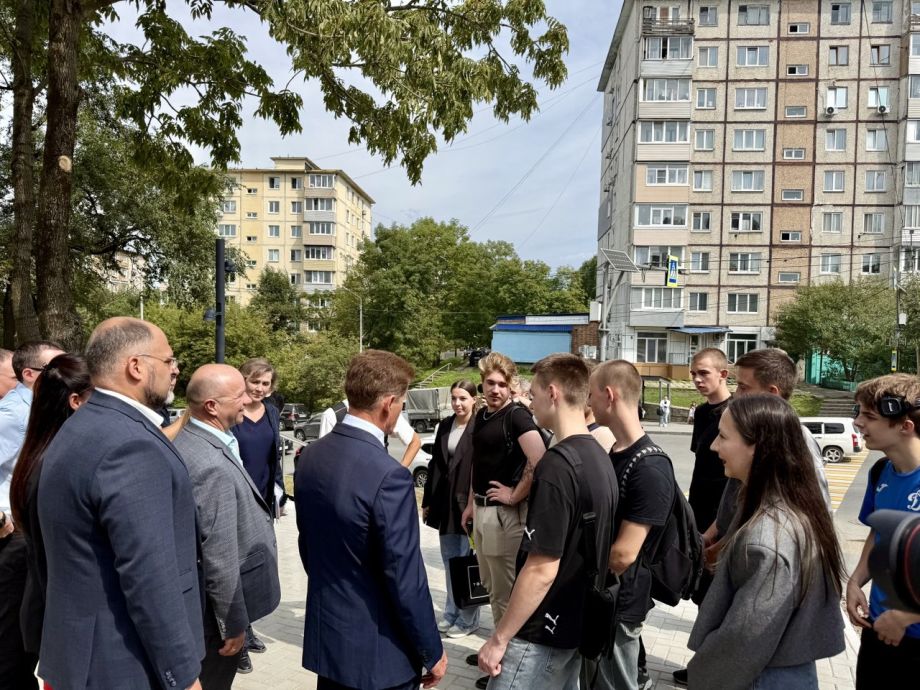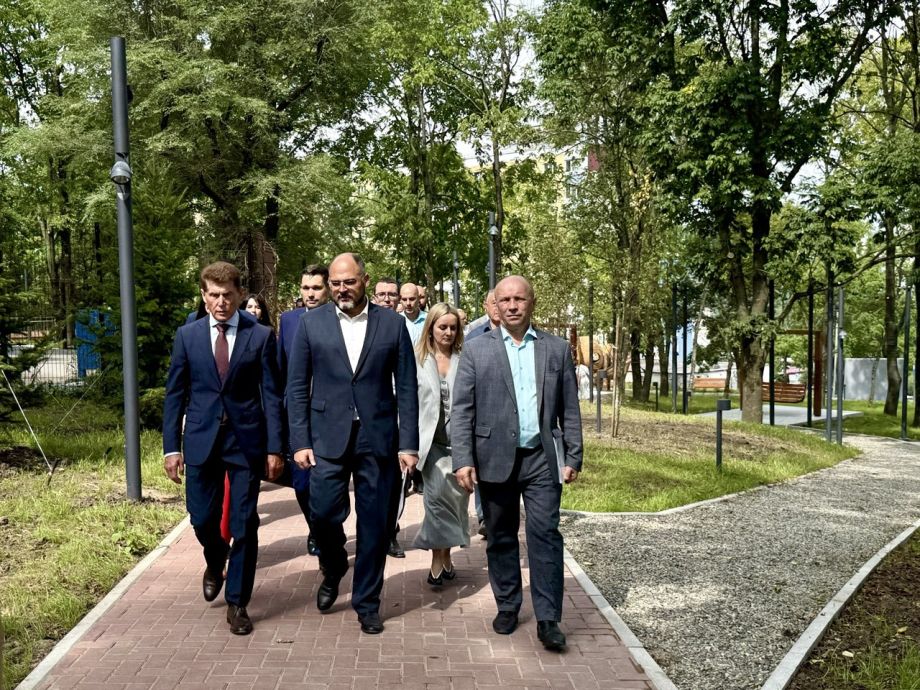 На открытии сквера присутствовали глава Владивостока Константин Шестаков и губернатор Приморского края Олег Кожемяко, которые ранее контролировали ход благоустройства территории.