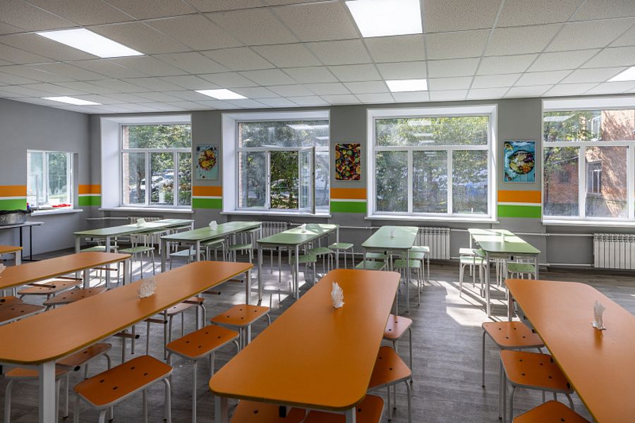 За короткие сроки строители привели помещение в порядок: обновили зону приготовления пищи и обеденный зал, уложили кафель и покрасили стены. В рамках программы модернизации администрация школы также закупила новую мебель.