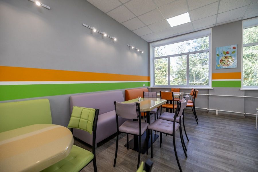 С подрядчиком, который должен был отремонтировать школу ранее, был расторгнут договор за бездействие. Новый подрядчик зашел на объект в конце июля и первым делом принялся за ремонт пищеблока, чтобы успеть подготовить его к началу нового учебного года. За месяц с небольшим строители привели помещение в порядок: отремонтировали зону приготовления и обеденный зал, уложили кафель, произвели покраску стен. Также администрация школы в рамках программы модернизации закупила новую мебель.