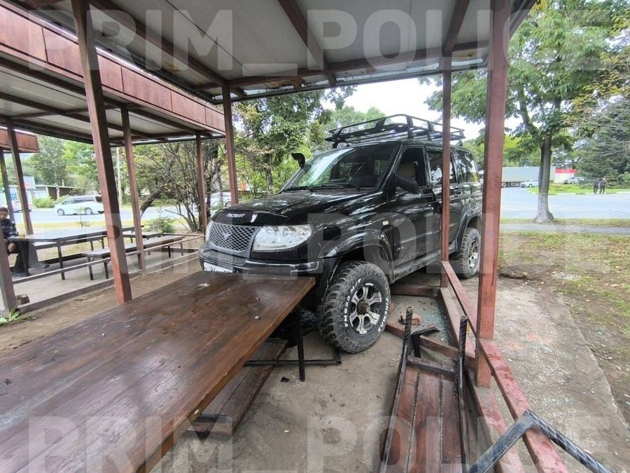 «38-летний водитель автомашины УАЗ Патриот при движении с «островка безопасности» в районе кольца Южного микрорайона не справился с управлением и совершил выезд с проезжей части дороги, протаранил беседку кафе и совершил наезд на 32-летнюю женщину, которая в момент столкновения находилась в беседке», – отчитывается о ДТП приморская полиция.